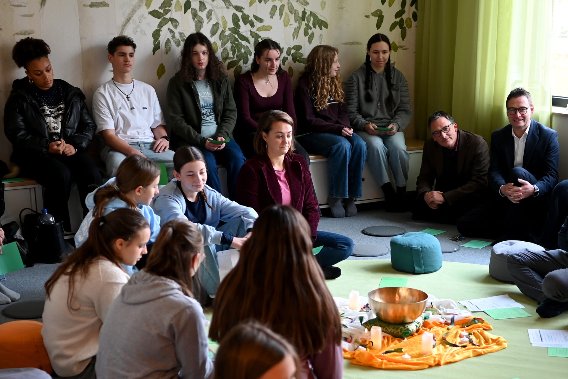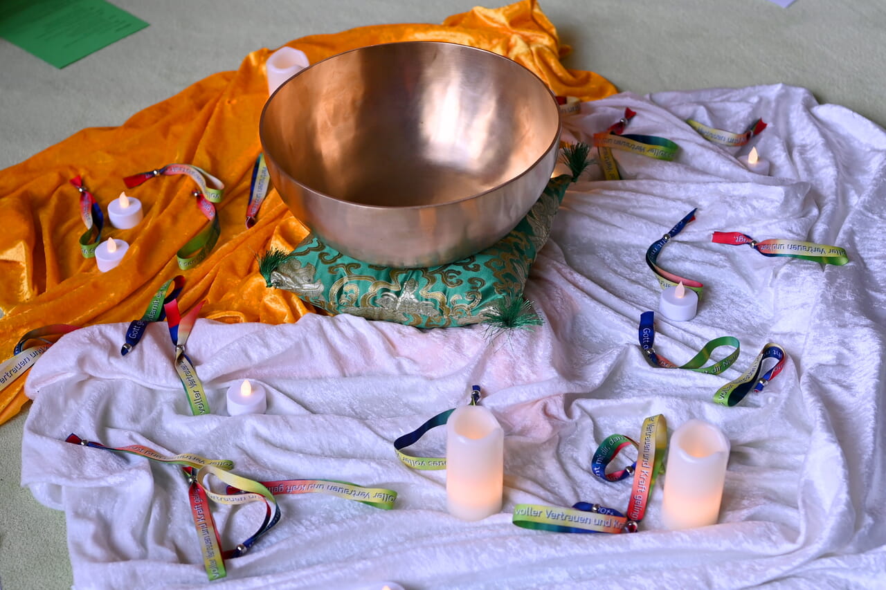 Der „Raum der Stille“ wird am vergangenen Dienstag mit einer Andacht eingeweiht. Die Schüler und alle Verantwortlichen, die an der Gestaltung dieses Raumes mitgewirkt haben, sitzen auf dem flauschigen Teppichboden und auf Kissen. In der Mitte des Kreises eine Klangschale und Elektrokerzen. Ein freudiges Aufatmen geht gefühlt durch den Raum. Ganz nach dem Motto: Endlich ist es vollbracht.